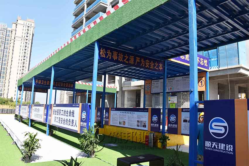 安全通道,施工現(xiàn)場實(shí)行人車分流,主要人員出入通道搭設(shè)了專用安全通道,安全通道兩側(cè)設(shè)置宣傳欄,提升施工作業(yè)人員的質(zhì)量意識、安全意識。